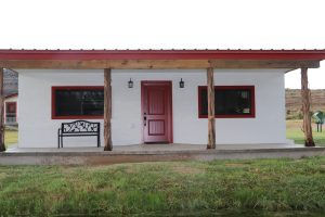 This building was the first built on the site in the 1940s and was constructed of cinder block tile made on the ranch. It was originally a small store for fisherman. We sold bait (minnows and worms) and basic supplies for campers. Most of the structure was destroyed in the flood of 1954 and it was then rebuilt and enlarged to become the first bunkhouse.
